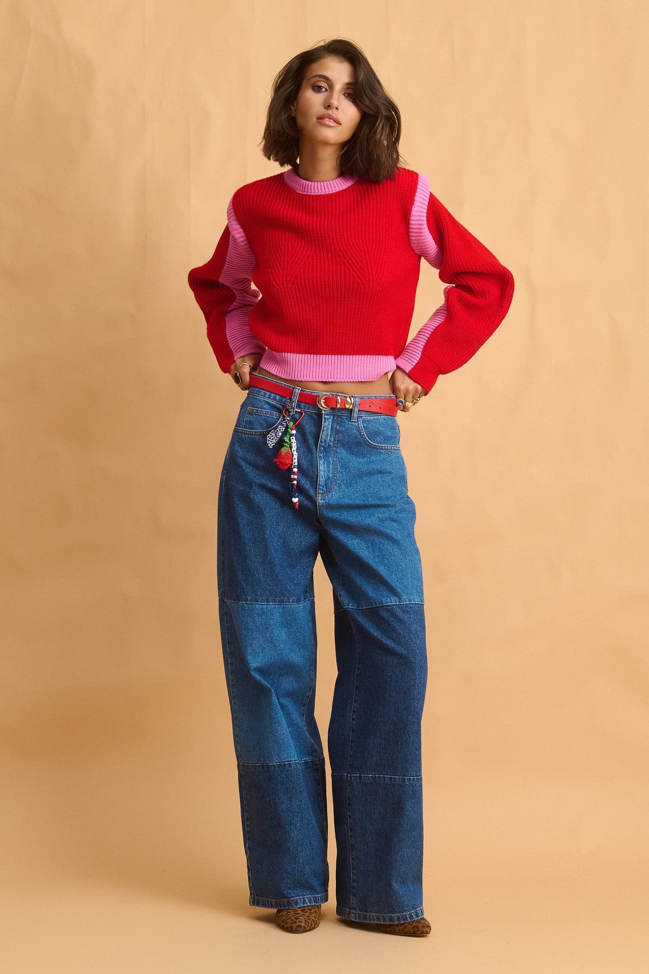 • midwaisted, wide-leg jeans