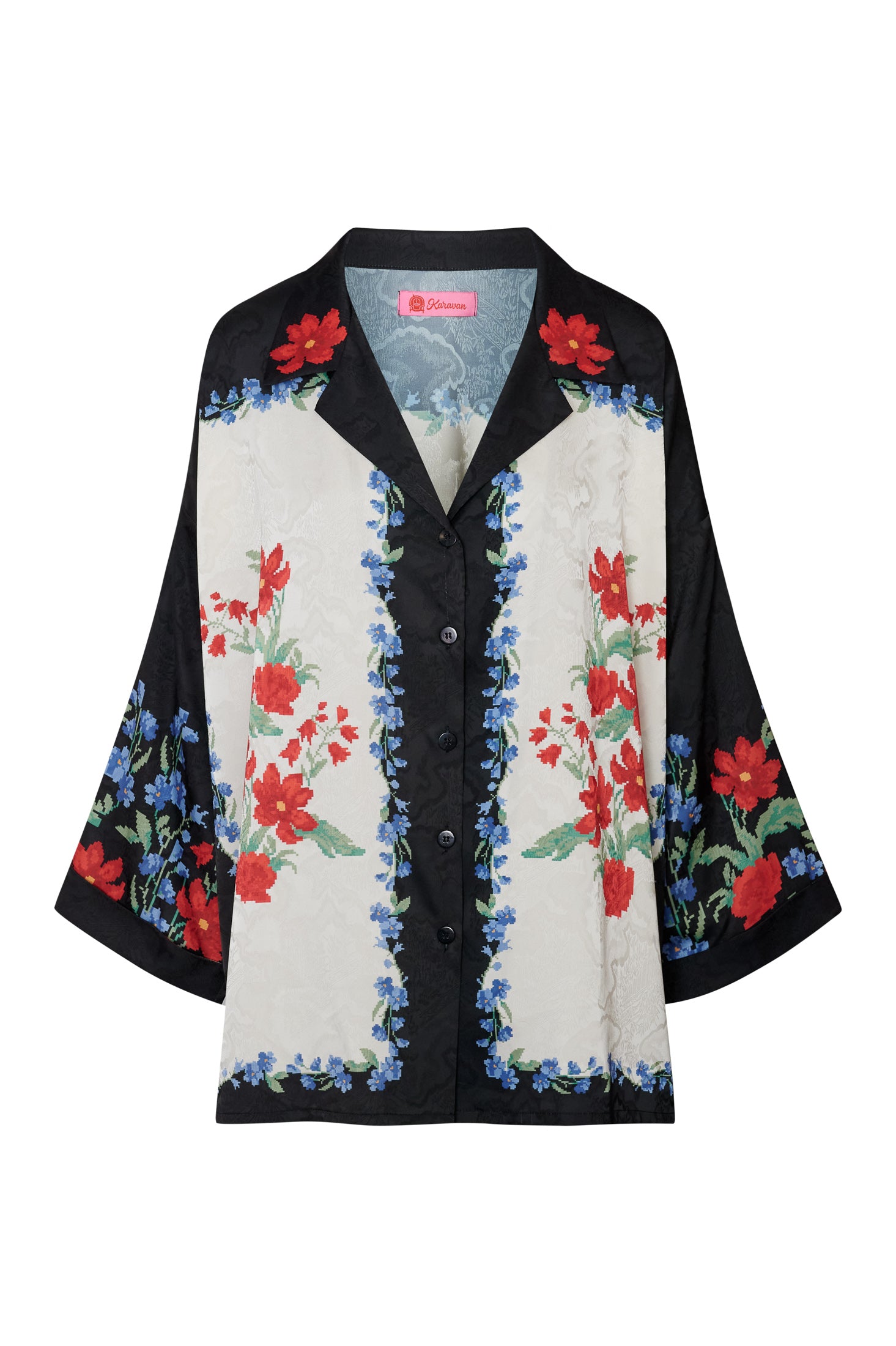 shirt - black, ivory, floral