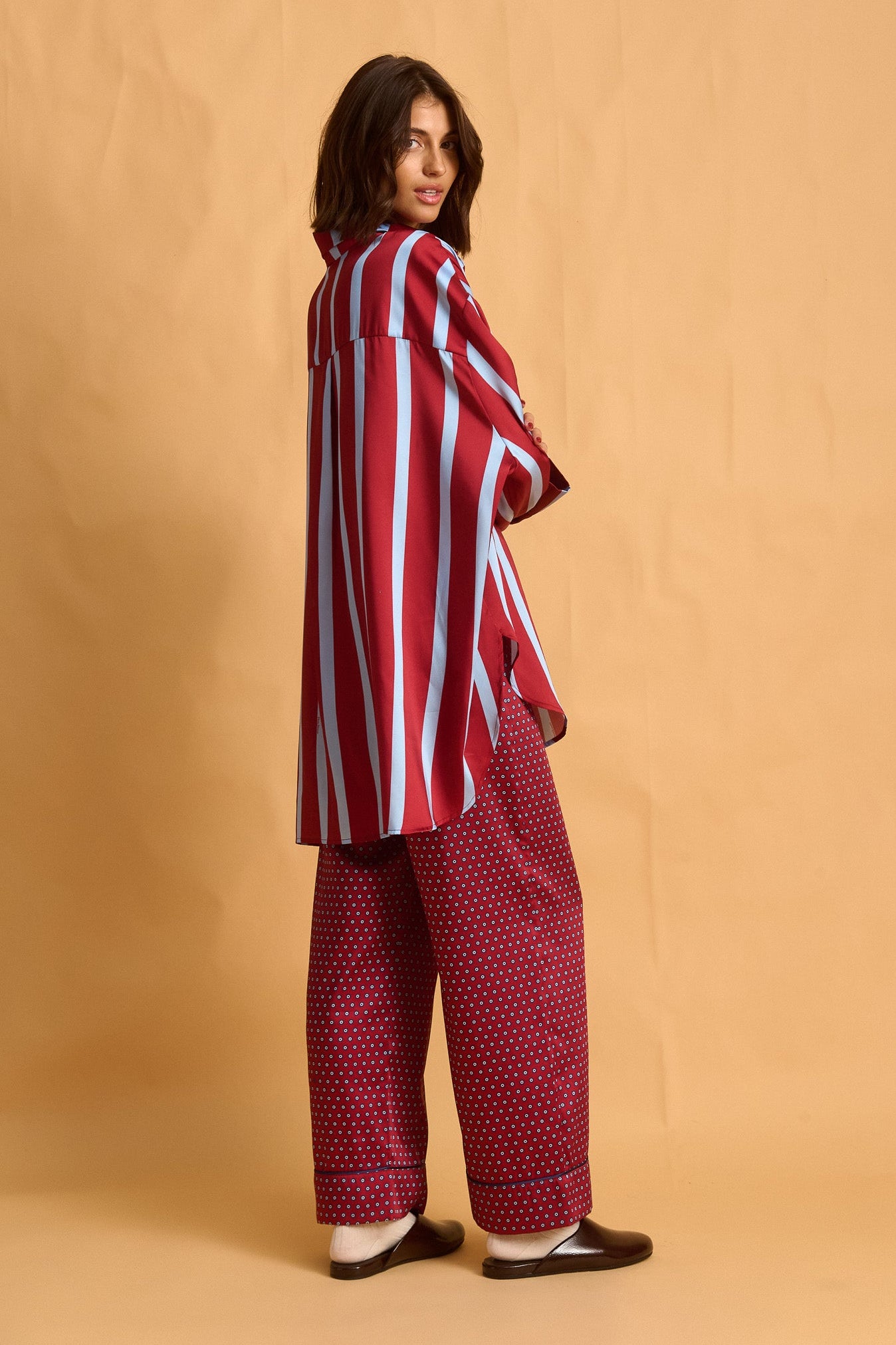 shirt - burgundy light blue stripes