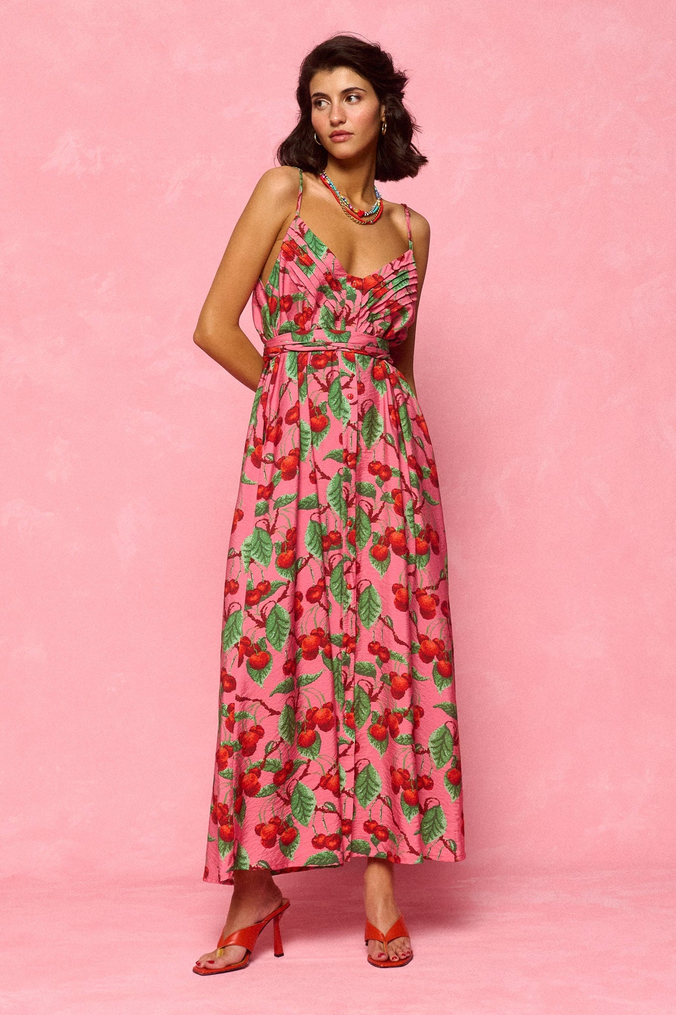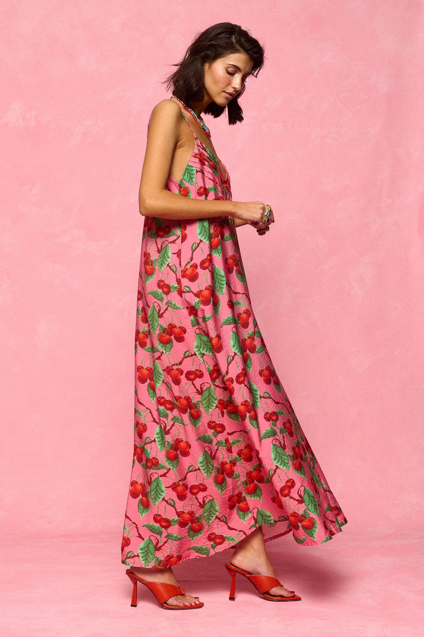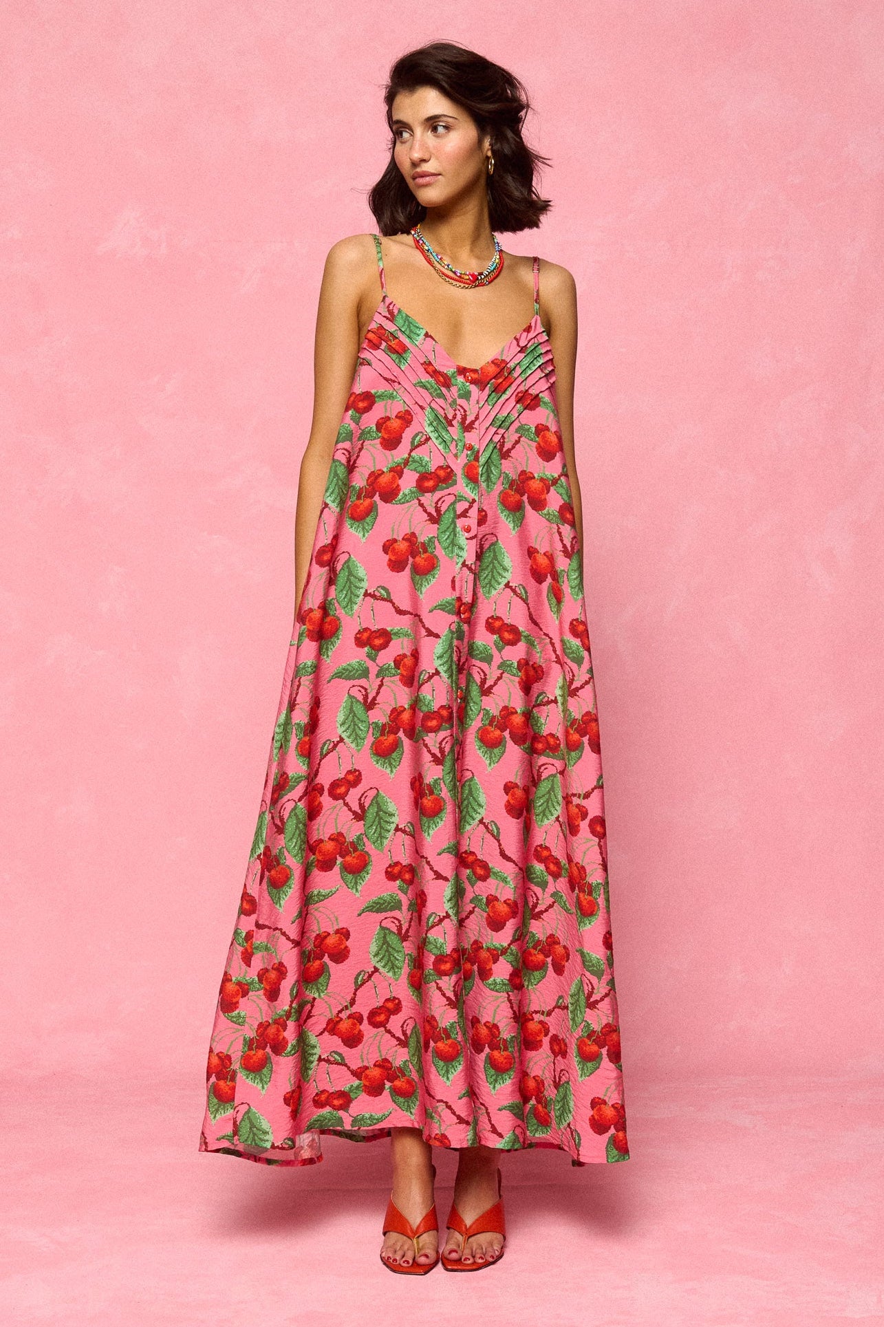 dress - cherries pink