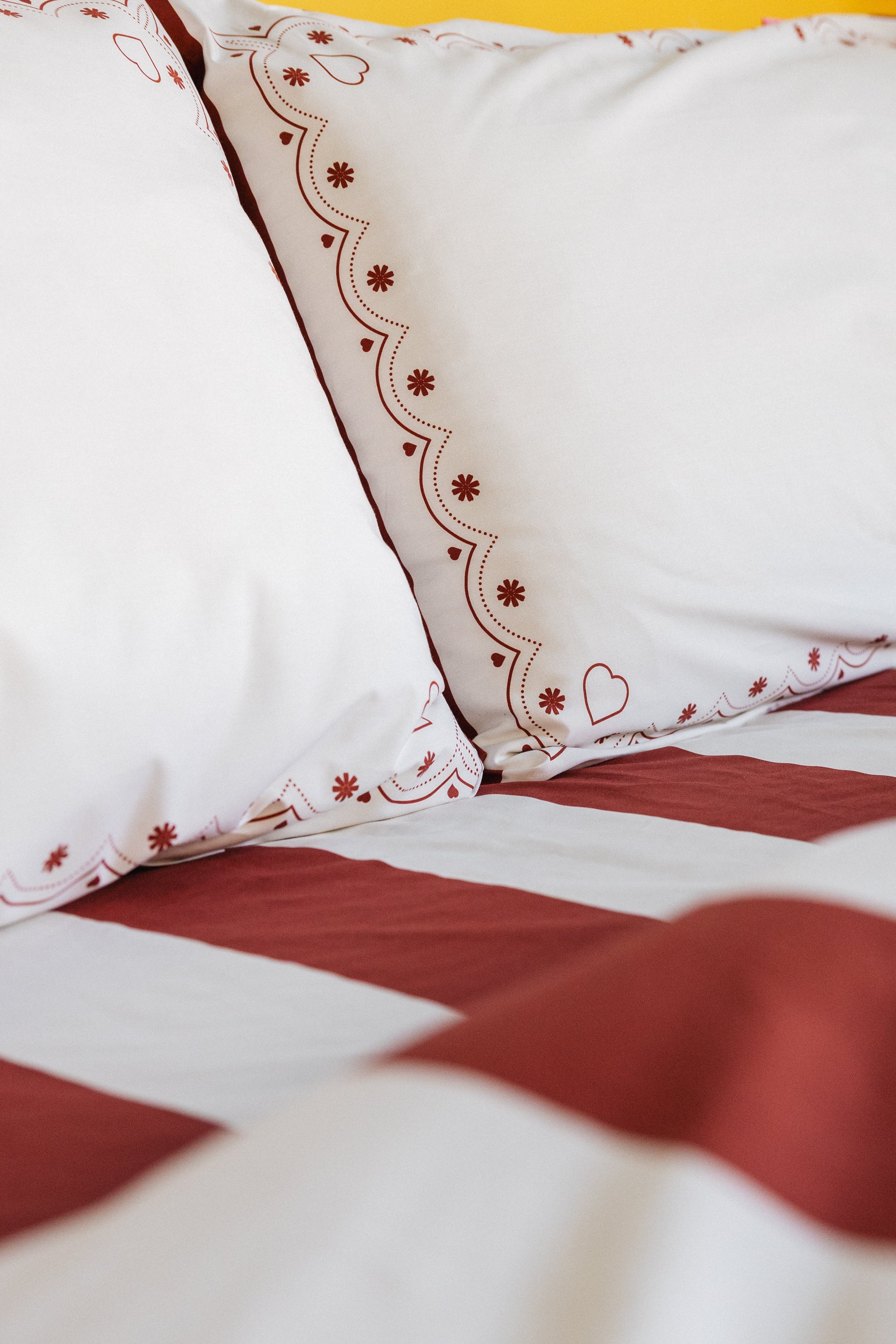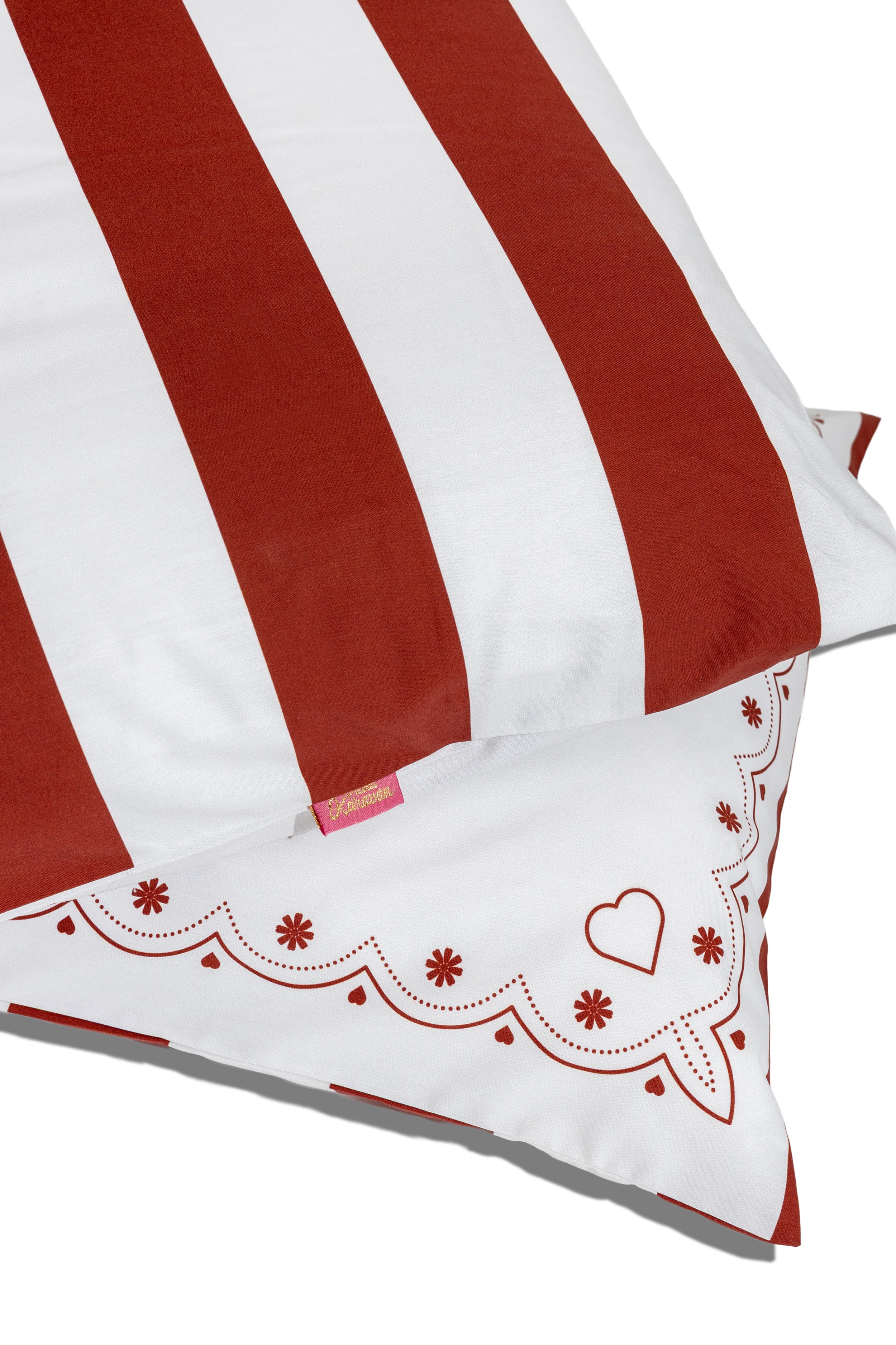 pillow case set - hearts, burgundy stripes