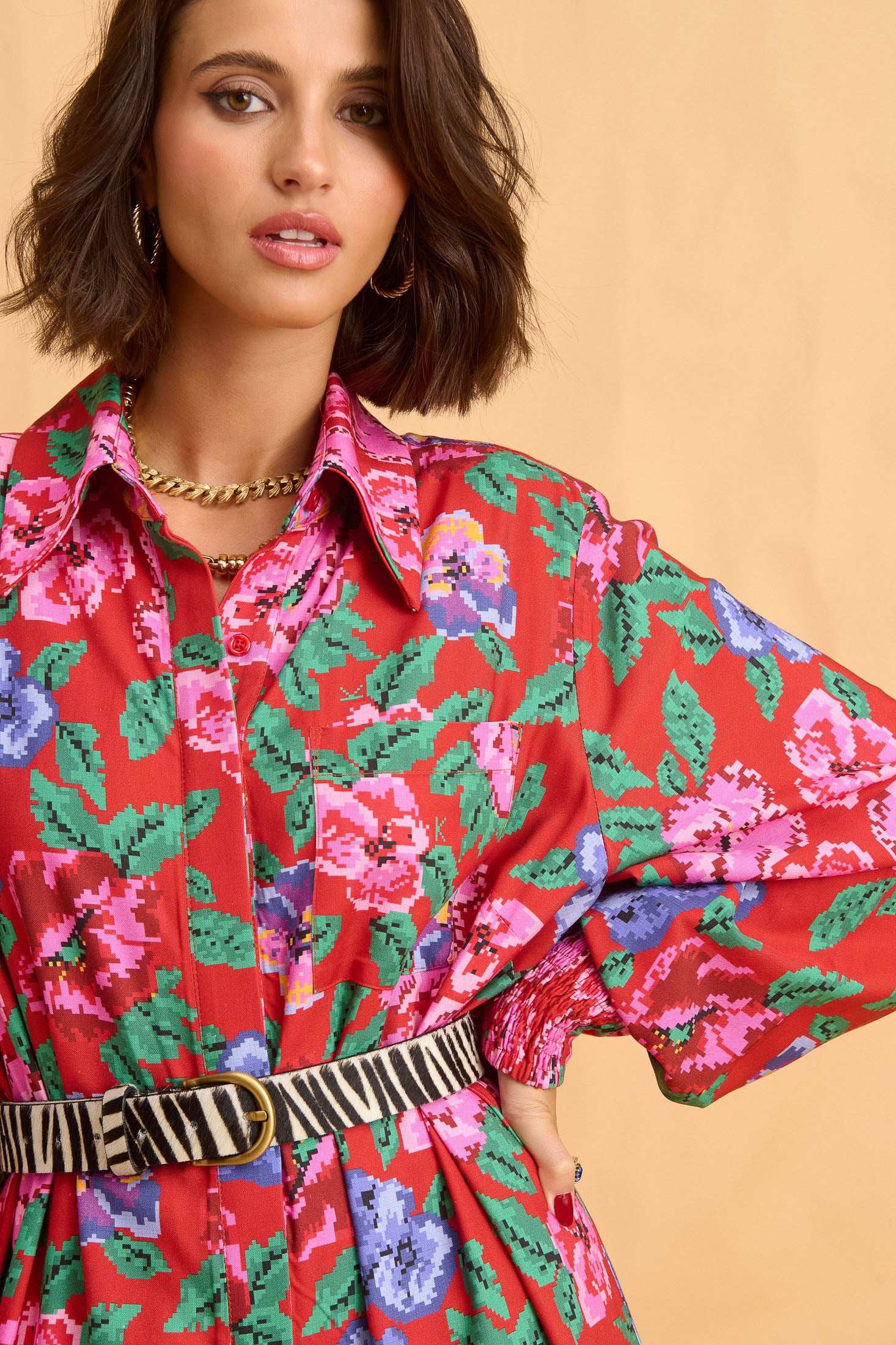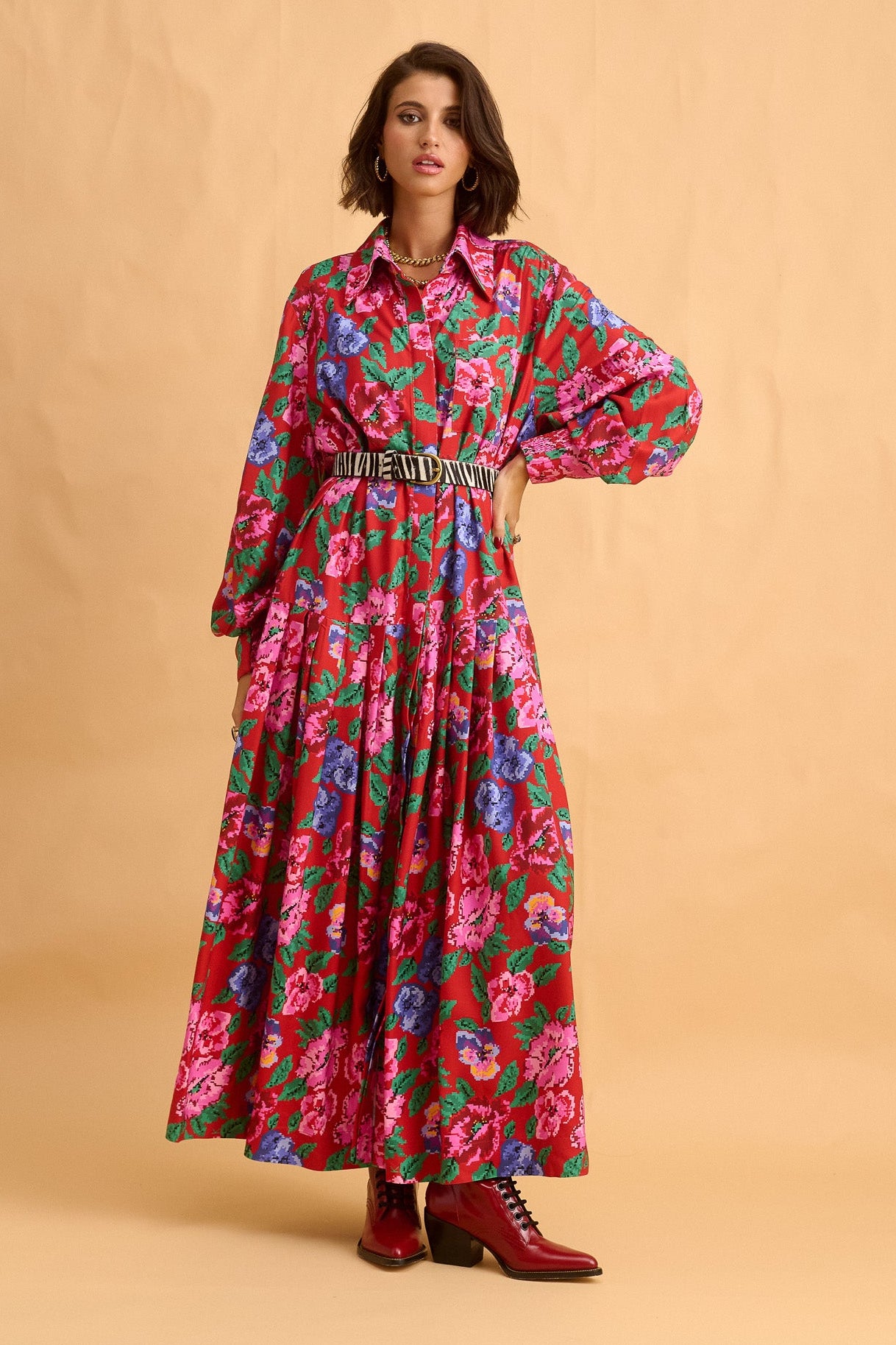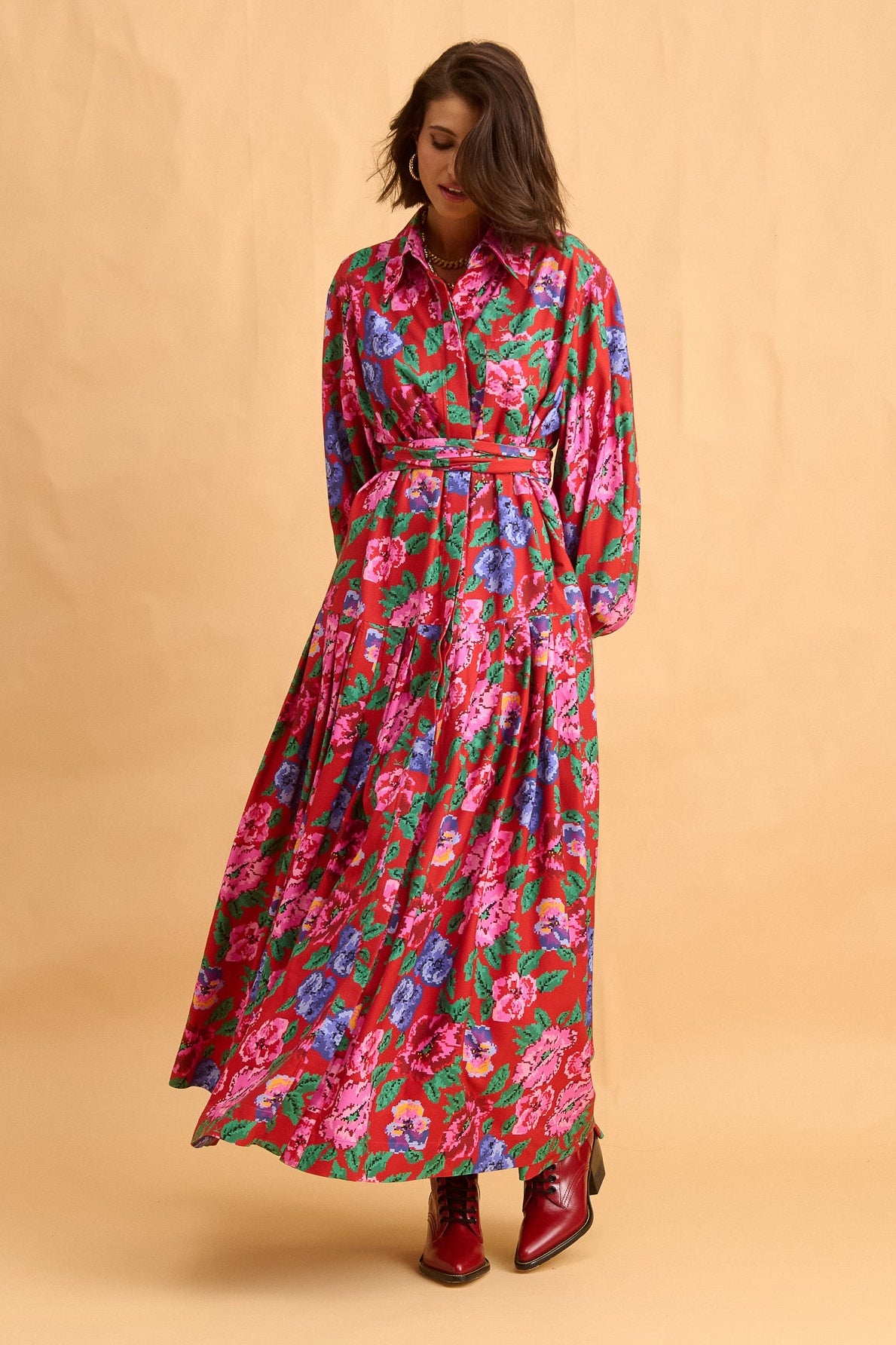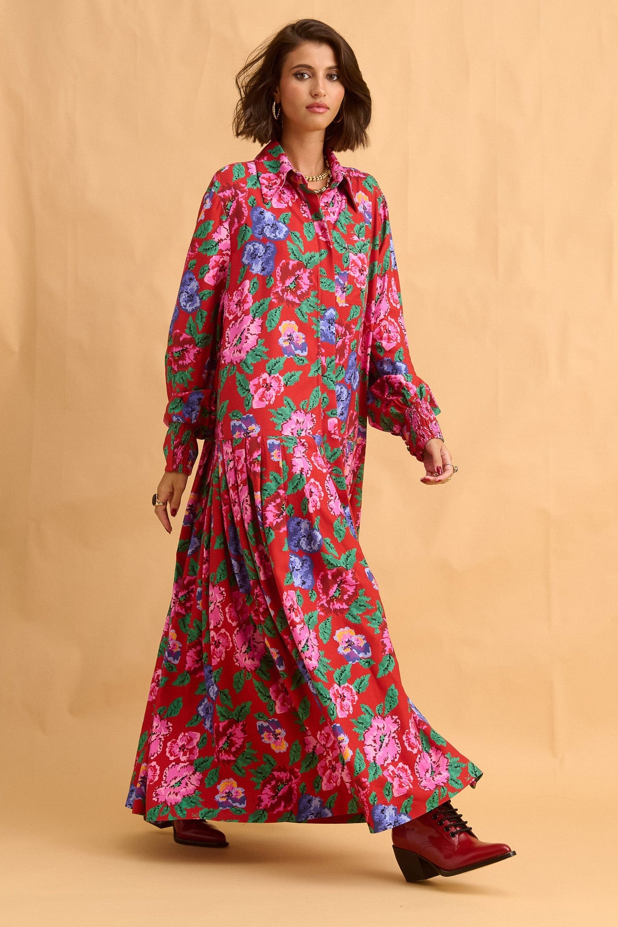 dress - pixel flower red