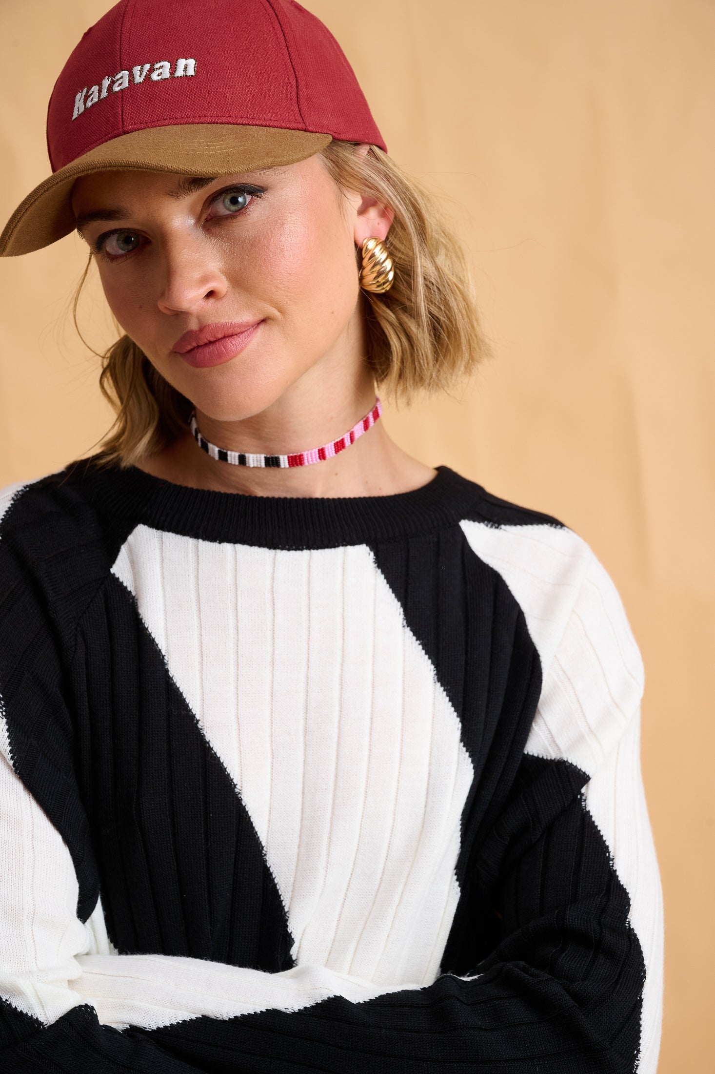 - In bold diagonal stripes