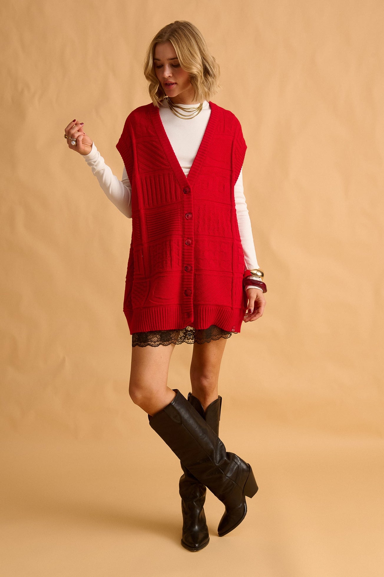 knitted vest - red