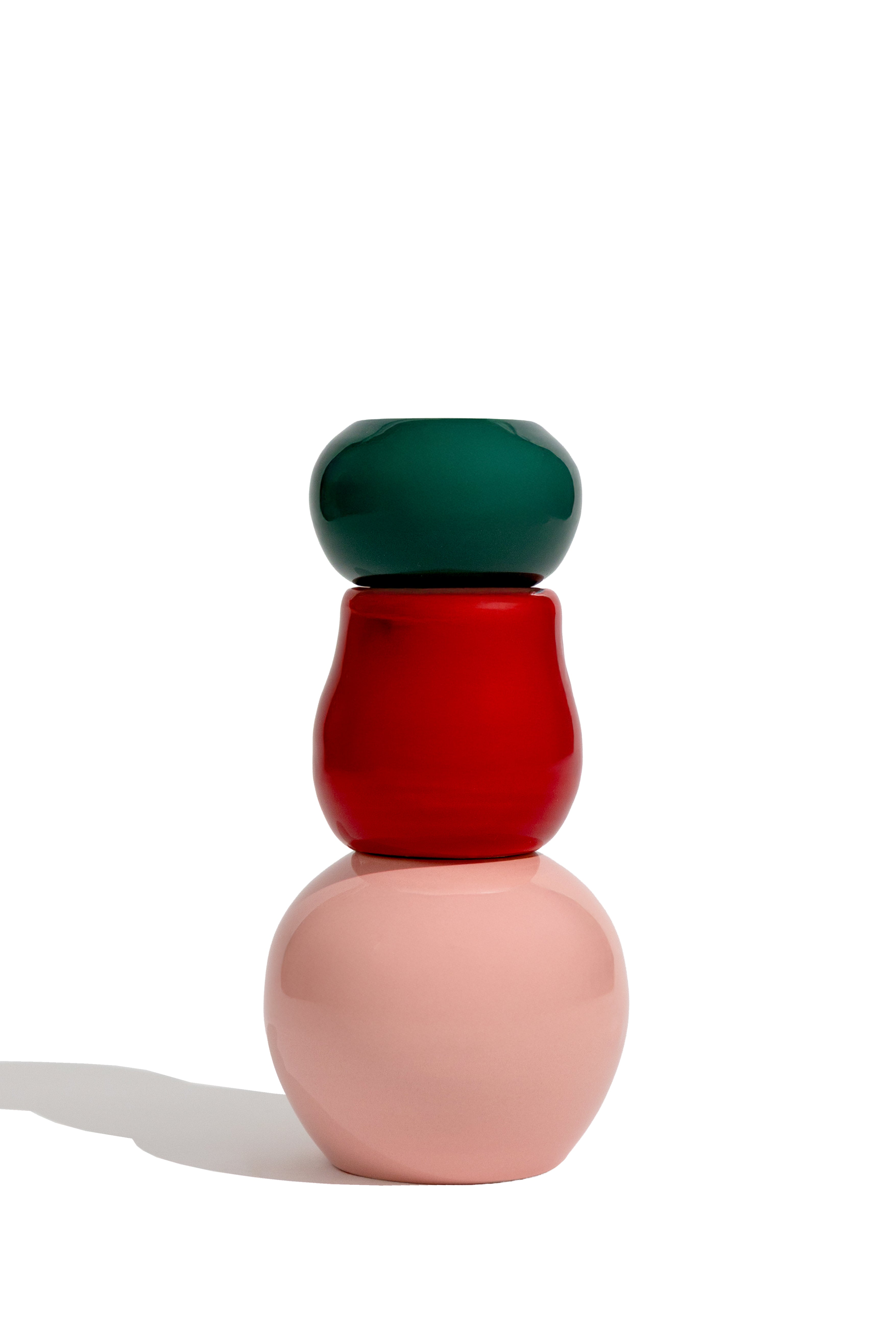 • shaped by hand and painted in vivid hues of red, green, and pink